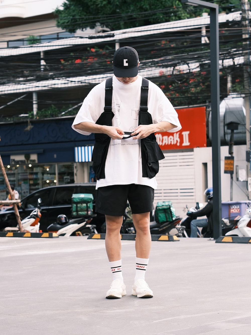 vest : @ssstein_design T : @minnnanoo pants : @ennoy_com socks : @marni shoes : @newbalance × @bryantdgiles cap : @the_clesste 元々夏は夏らしく半袖短パンを着る派なので、夏服はそこまで持っておらず、夏服のレパートリーが尽きています。 夏でも履ける長ズボンとか、さらっと羽織れるアウターとか、コーデのアクセントになるベストやカバンやアクセサリーとか、挙げるとキリがないですが全部欲しい笑 なんかいい万能アイテムないですかねー 📸:FUJIFILM X-S20