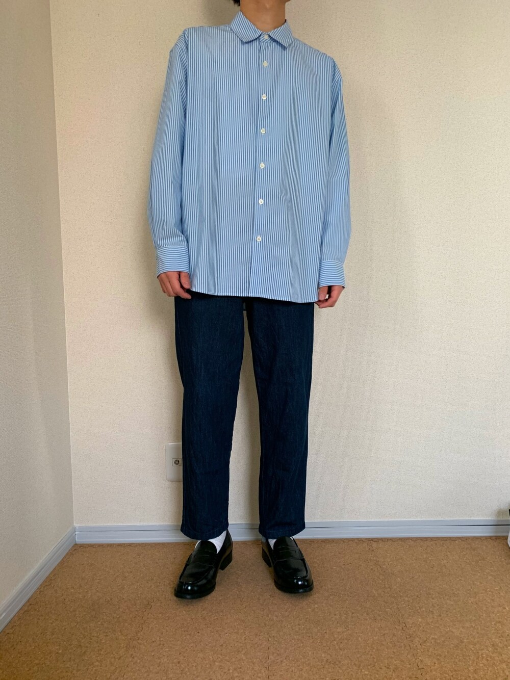 こんばんは🌚 身長は高くない方なので、綺麗めな着こなしが気に入ってます! 青色が好きなので、このコーデはお気に入り👶 ではでは!