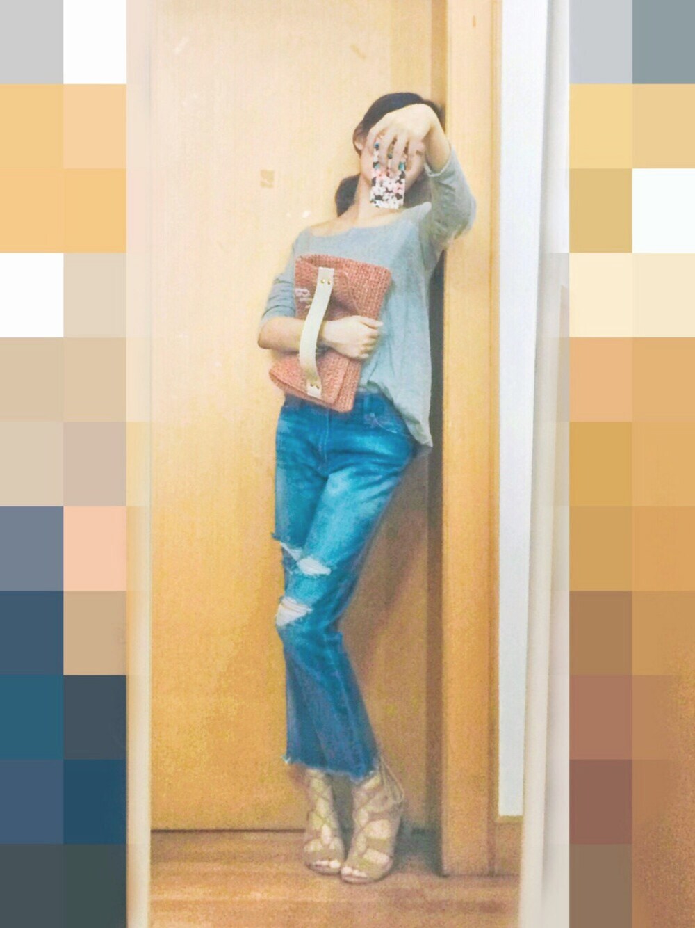 从今天开始#每日穿搭#这个tag! 希望能坚持! 这套虽然没什么新颖独特的地方,不过也算是囊括了今年夏天的几大流行元素🤗 露肩,纯色T,绑带,破洞磨边,手拿草编。其实应该配个宽边帽才好,不过我的帽子还在路上😂过几天收到帽子了再更改一下这个穿搭吧😉 啊~想去买点项链首饰啊😞
