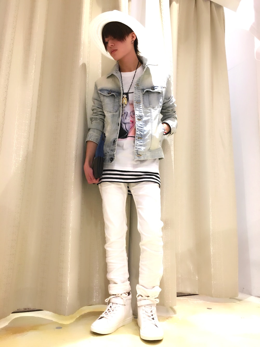 NEW STAFFオススメのコーディネート ライトカラーのGジャンとホワイトパンツ インナーに斬新なプリントTとボーダーで 色味も取り入れ、より春らしくしてみました! ネイティブアイテムも 小物で取り入れ トレンドもしっかりおさえてます! 新生活や行楽シーズンに 大活躍しそうなアイテムです!!!