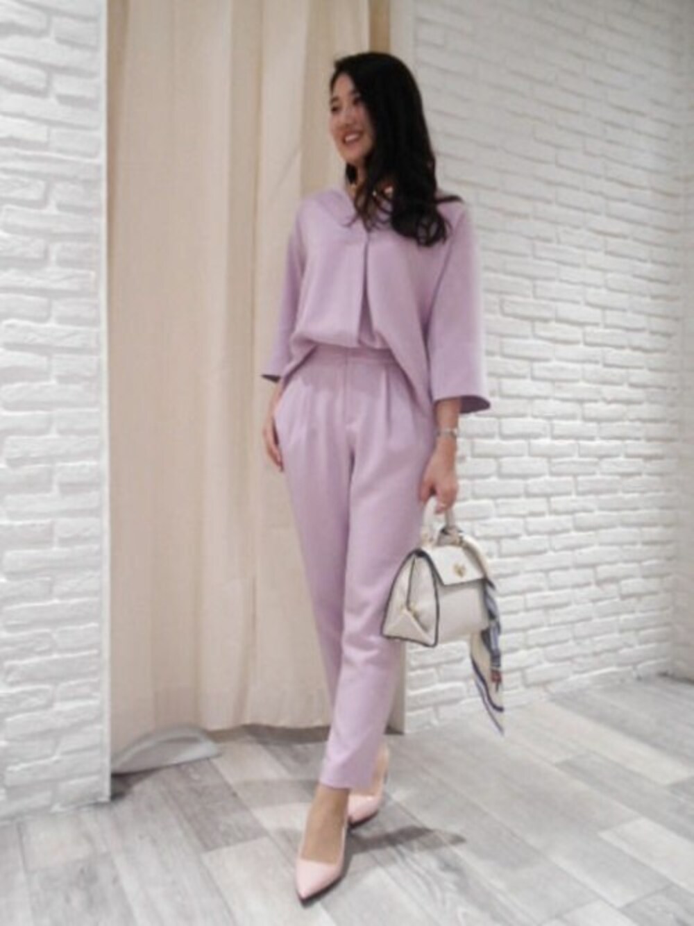 オケージョン対応もできるセットアップスタイル セットアップ着用でオケージョン対応も可能。 結婚式などパーティーシーンにはもちろん、通勤や入卒園式などのONスタイルに◎。 上下別々のスタイリングも可能なので、合わせるボトム次第でON/OFFスタイルどちらも着こなせるのでおすすめです。