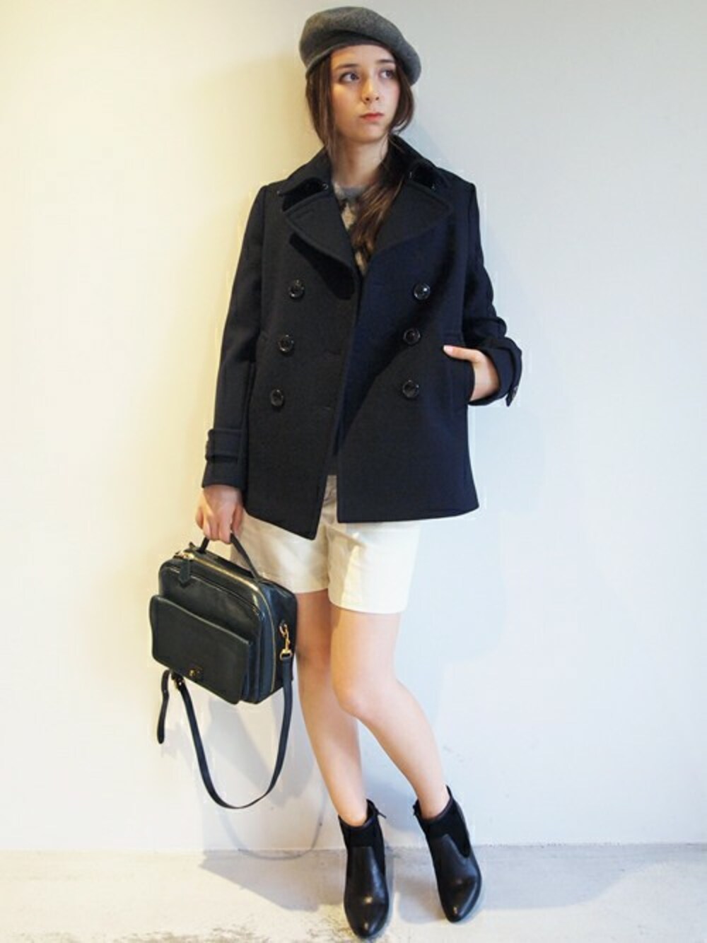 オリジナルのメルトンPコートをメインにコーディネートしました。 上質な素材を生かした美しいシルエットが魅力的です。 アウターの雰囲気に合わせた小物使いが光る、クラシックカジュアルスタイル。
