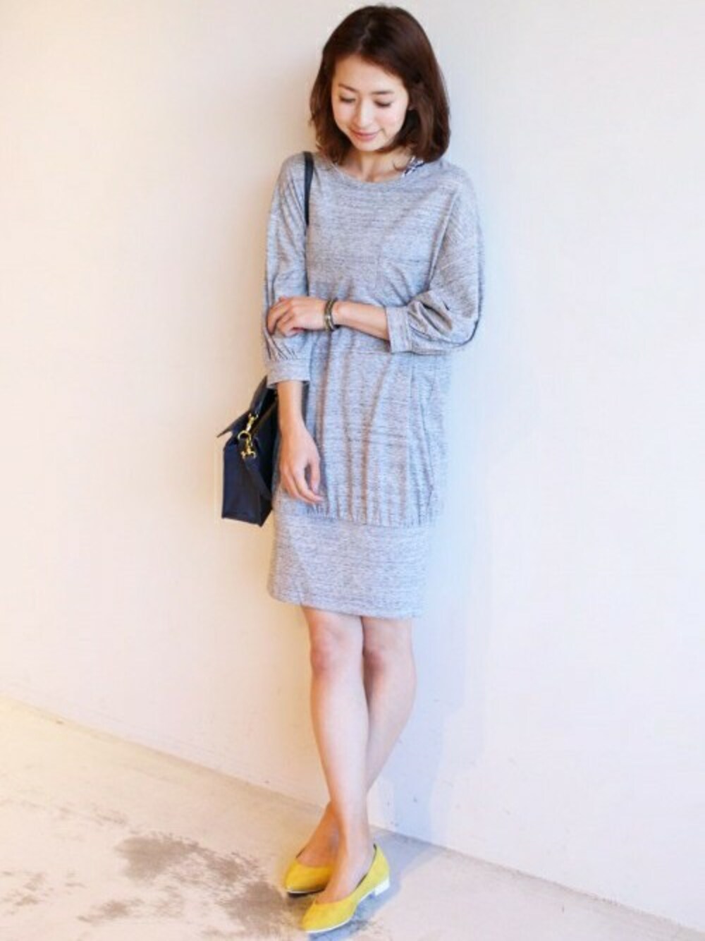 リラックスムード漂うレイヤードワンピーススタイル。 トロピカルプリントのインナーが、一足先に季節感を演出してくれます♪ カラーが映える小物使いでアクセントをつけました。
