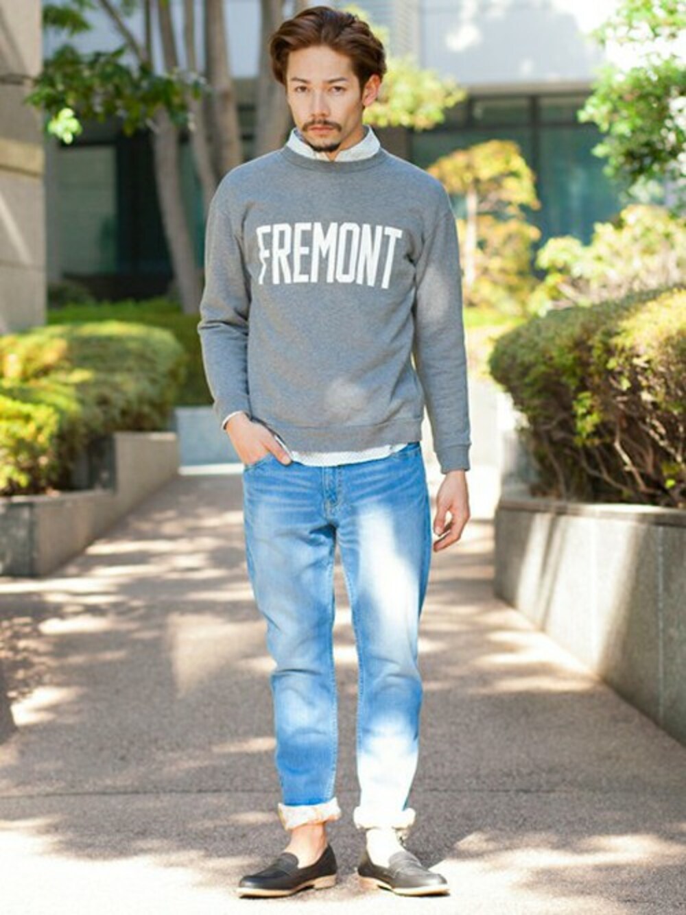 トレンドのスウェットをロールアップしたパンツでバランスをとった春コーディネート。足元にローファーを合わせることで、カジュアルながらきれいめなスタイリングに仕上げました。