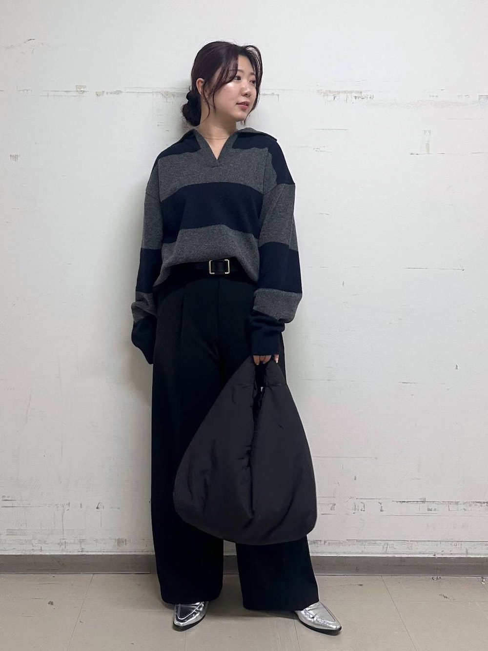 ご覧いただきありがとうございます♪ 着用アイテムの購入&詳細は下の使用アイテムから☺︎ 気になるアイテムが無い時は 【♡お気に入り】登録しておくと見返せて便利です! 特に予約商品はand stポイントが2倍なので 新作商品もお得にお買い物ができます♡ ーーーーーーーーーーーーーーーーーーーーー 【トップス】⋆꙳𓂃リアルバイ𓂃꙳⋆ ★ラガーニット/ネイビー×グレー・Free トレンド感があるラガーニットはゆるっとラフに着ることがオーバーサイズのニットです!身幅や着丈など全体的にゆったりとしているので楽ちんニットになっています!特に着丈はお尻がすっぽりと隠れる安心感抜群の丈感でパンツと合わせてもきれいに着ることができます◎ウールが入っていますが、私はチクチク感は感じませんでした。気になる方はデニムシャツなどでレイヤードスタイルとして着てもかわいいです!! 【ボトムス】 ★タックウエストワイドパンツ/ブラック・M size ハイウエストで脚長効果抜群のワイドパンツ! サラッとした生地感がきれいめなお洋服に相性がいいです!!裏地がついていないので、春先まで使えます!冬場は中に履きこんでもゆとりがあるので調節可能です◎ ウエストは後側にゴムが入っていて楽ちんです!丈感は長めなので、スッキリ履きたい方はSサイズがおすすめです。 ーーーーーーーーーーーーーーーーーーーーー インスタグラムで店舗情報など配信しています! また、商品のことやご質問なども承ります☻ インスタグラムのDMからお気軽にメッセージ下さい♡ ↓↓↓