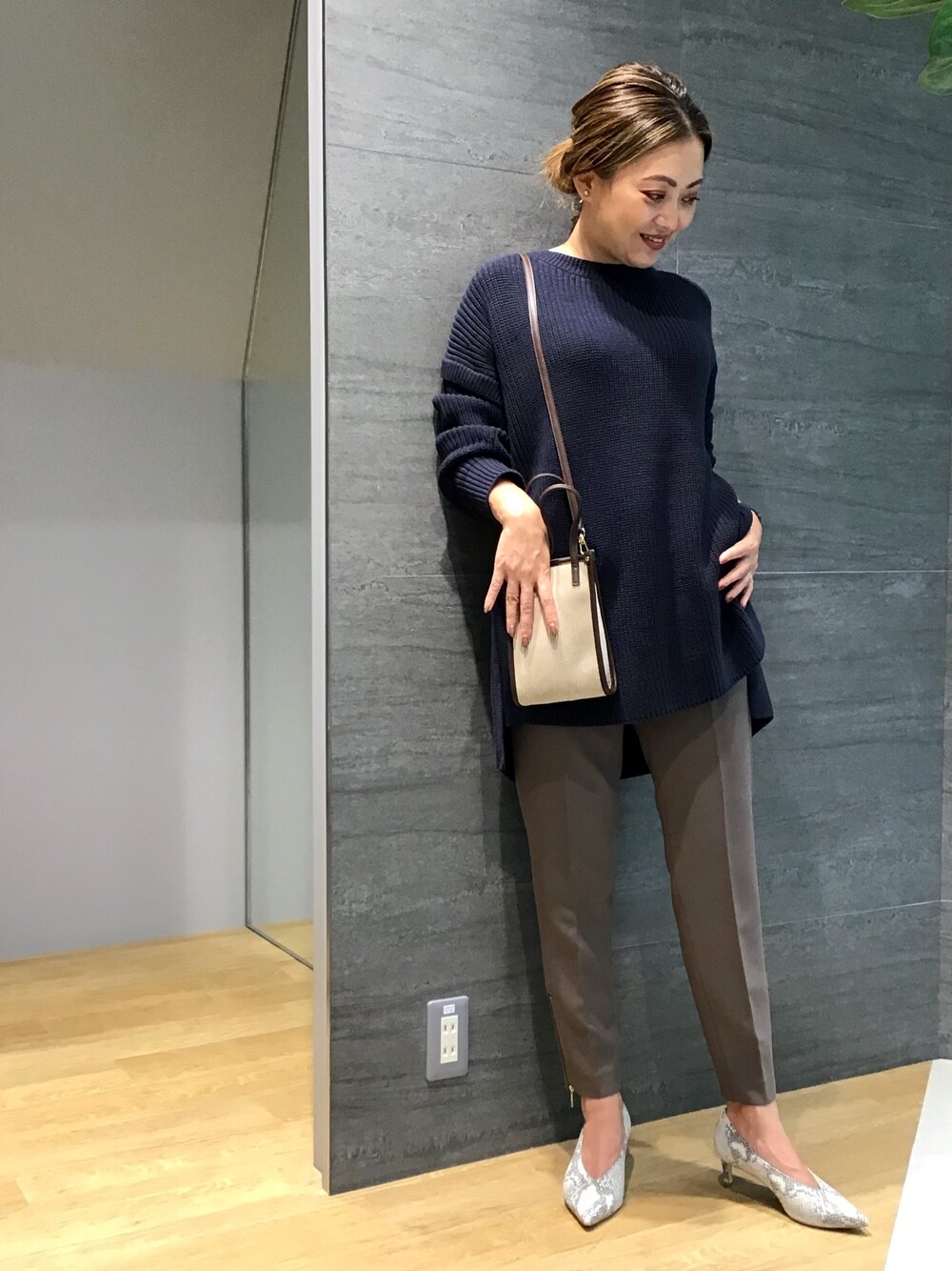 着丈の長いボリューム感のあるニット★ サイドにスリットが入っており, 細身のパンツと合わせてスタイルアップ◡̈♪ ベーシックな着回し万能のパンツは, どんなトップスともスタイリングしやすいですよ♡