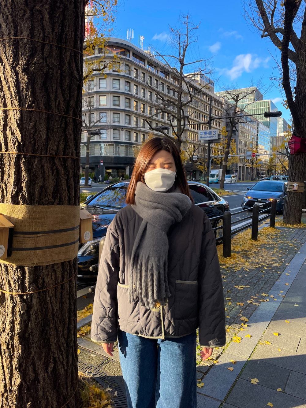 by muni:r staff(by muni:r)のマフラー「ビッグボリュームフリンジマフラー」を使ったコーディネート