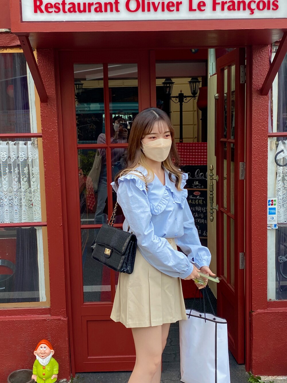 ビッグカラーがラブリーなブラウス✨ スカートにベージュを合わせることでカジュアルに仕上げてみました🤍