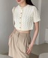 広いプリーツラインなので足元をすっきりして見せてくれる効果があります✨ また、身長の低い方でもクロップド丈のカーディガンを合わせてあげることで全体的にすっきりとした印象を与えてくれます◎
