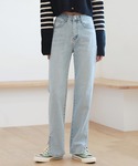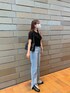 by muni:r staff(by muni:r)のデニムパンツ「足が長く見えるシルエットハイウエストロングスリットデニム」を使ったコーディネート