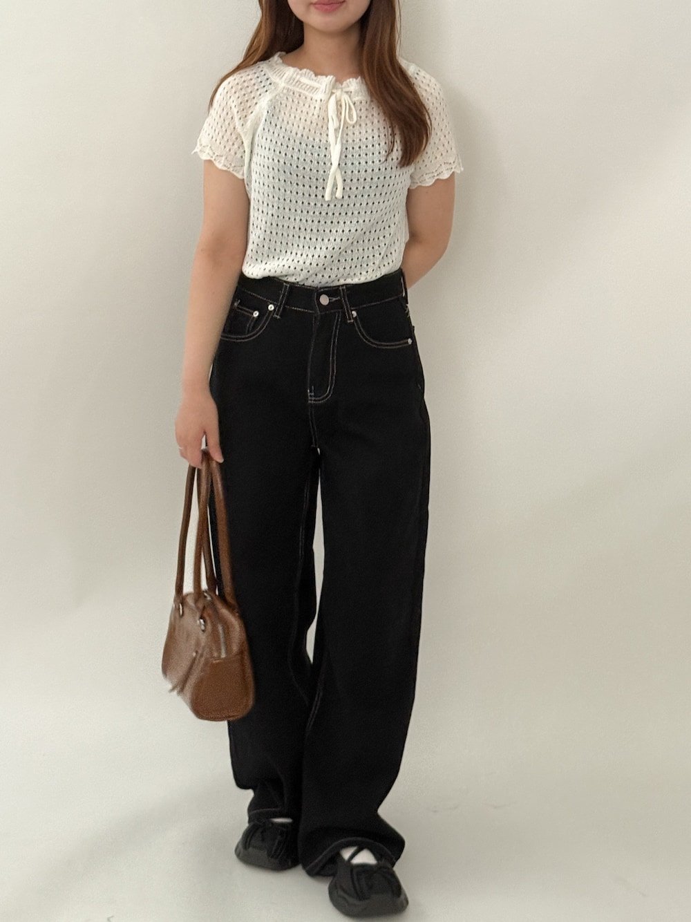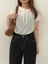 by muni:r staff(by muni:r)のニット/セーター「【お気に入り登録数4万突破!】パンチングリボン半袖ニット」を使ったコーディネート