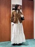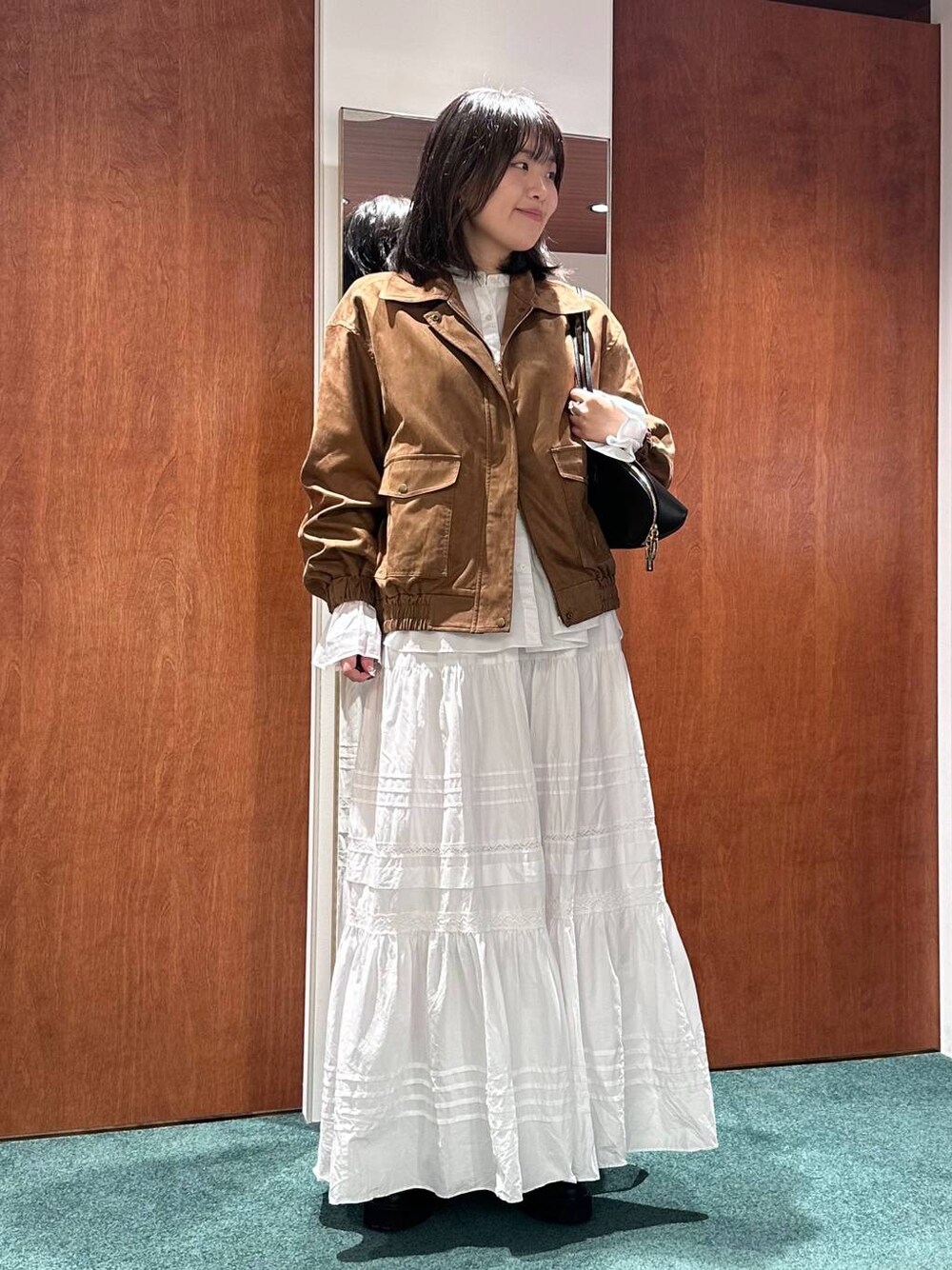 ご覧いただきありがとうございます!💌 ・アウター フェイクスエードブルゾンは、ほどよくゆったりとしたサイズ感で、インナーに長袖Tシャツやニットを合わせてもバランスよく決まる万能アウターです。 とても軽やかな素材感に加え、柔らかな肌触りも嬉しいポイント! キャメルカラーは秋冬シーズンにぴったりの色味で、寒い日の外出にも暖かく快適に着こなせます。 ・トップス スリーブがポイントになったコットンブラウス。 扱いやすい素材で、カジュアルにもフェミニンにも合わせやすい万能アイテムです。 一枚でさらっと着るのはもちろん、ニットやフーディーのインナーとしてレイヤード風に着こなすのもおすすめです。 ・ボトムス マキシ丈でディテールが可愛いホワイトスカート。 扱いやすいコットン素材でデイリーに活躍してくれる一枚です。 レースのディテールが大人っぽさと可愛らしさを兼ね備え、コーデにさりげないポイントをプラスしてくれます。 ブーツとバッグはブラックでまとめ、全体のバランスを整えました ♪ インスタ ➜ ぜひインスタもフォローお願いします!💌