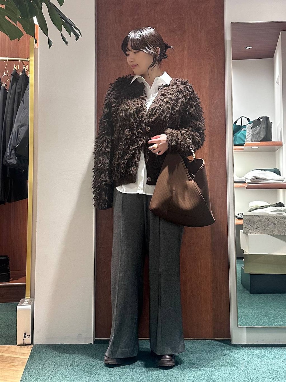 ご覧いただきありがとうございます!💌 ・カーディガン ボリューム感が魅力のカーディガン。 ボタンが目立たないデザインなので、カジュアルになりすぎず、きれいめスタイルにも合わせやすい一枚です。 ふんわりとした柔らかな肌触りが可愛らしく、1枚でコーディネートのポイントになるアイテムです。 ・シャツ カシュクールにもなる2wayデザインのシャツ。 使いやすい素材で、デイリーに活躍するアイテムです。 単品でも、レイヤードでもバランスよく着こなせます。 ・ボトムス 昨年人気素材の暖かいキレイめワイドパンツ。 ウエストはゴム仕様で、ストレスフリーな穿き心地。 裏起毛素材で、寒い季節もタイツなしで暖かく着用いただけます。 ブラウンのブーツとブラウンのバッグを合わせ、ワントーンコーディネートに仕上げました♪ インスタ ➜ ぜひインスタもフォローお願いします!💌