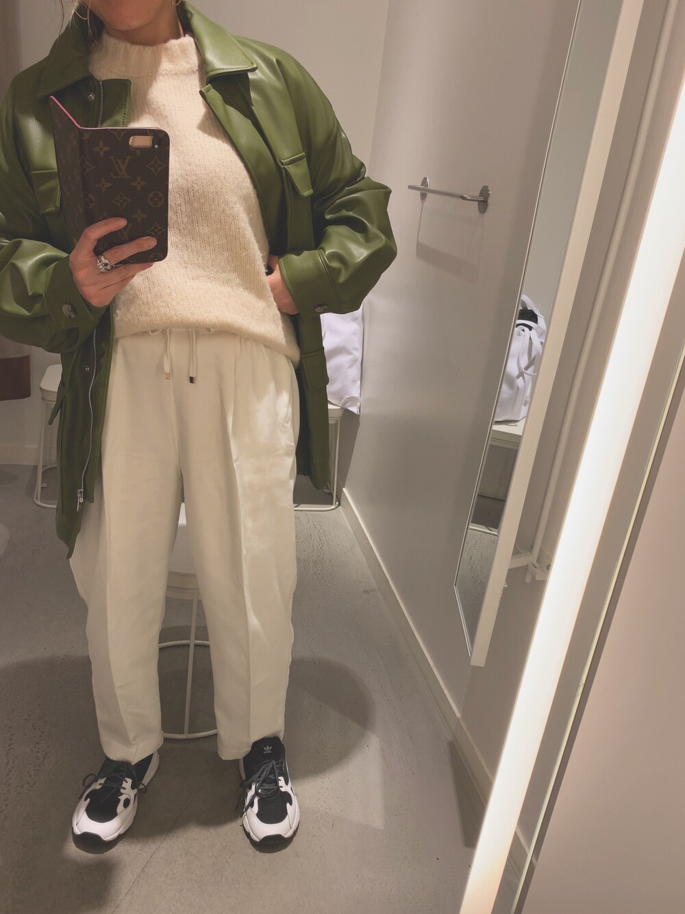 大人men's code モスグリーンのカラーが珍しいエコレザーの サファリジャケットで ちょっとmen's codeっぽく Instagram @by.nene も遊びに来てください♡