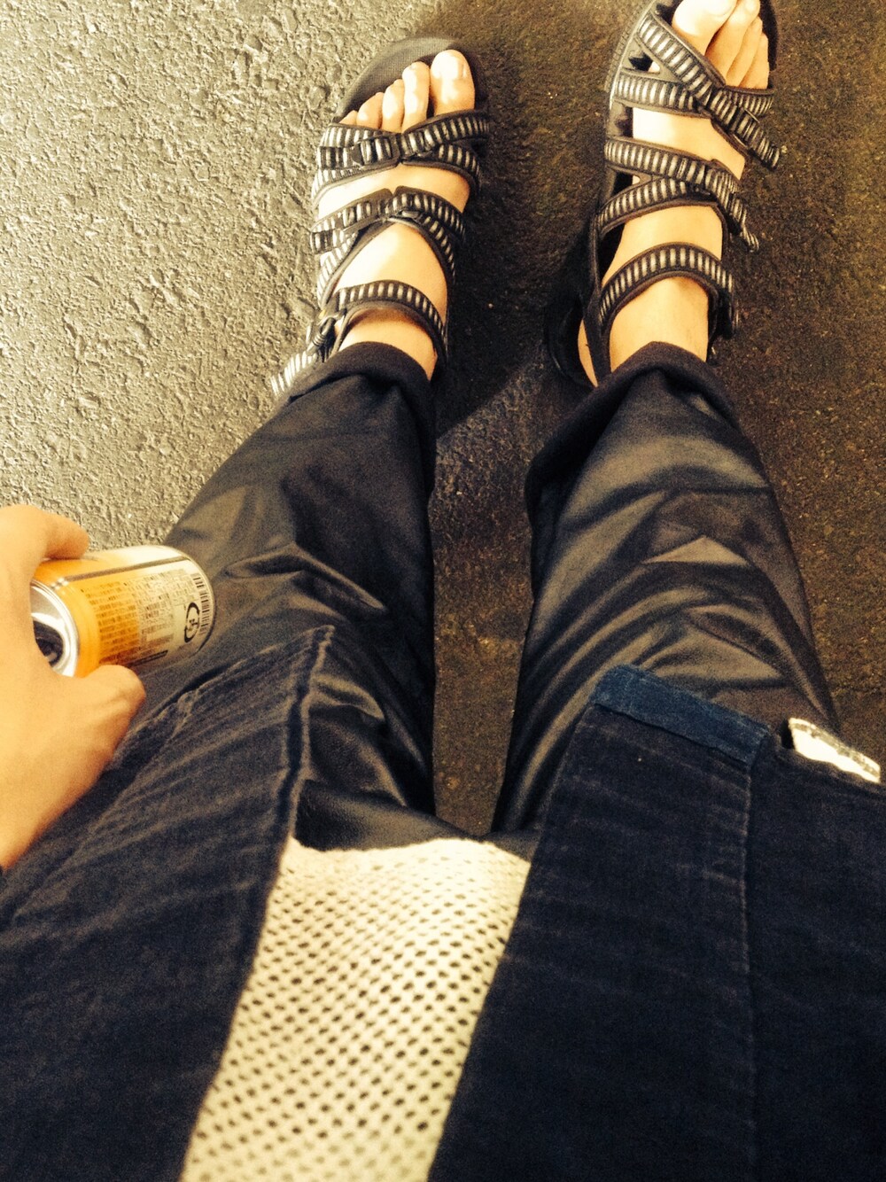 ブラック系のその他アウター、ブラック系のサンダルを着用したメンズの春コーディネートの1枚目の写真