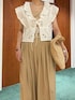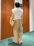 ご覧いただきありがとうございます☺︎ ——————————————————————————— デザインがとてもかわいいエンブロイダリーブラウス ベージュのサテンキャミと撥水タックパンツに羽織り、 ブラウスが主役のスタイリングです♪ パンツは楽ちんウエストで、サイドにゴールドボタンのアクセントがあります✨ メッシュパンプス38でもやや小さめに感じました ——————————————————————————— フォローしていただくと、最新スタイリングをすぐに確認できます〜! Instagram @by_yamaguchi 🛋️
