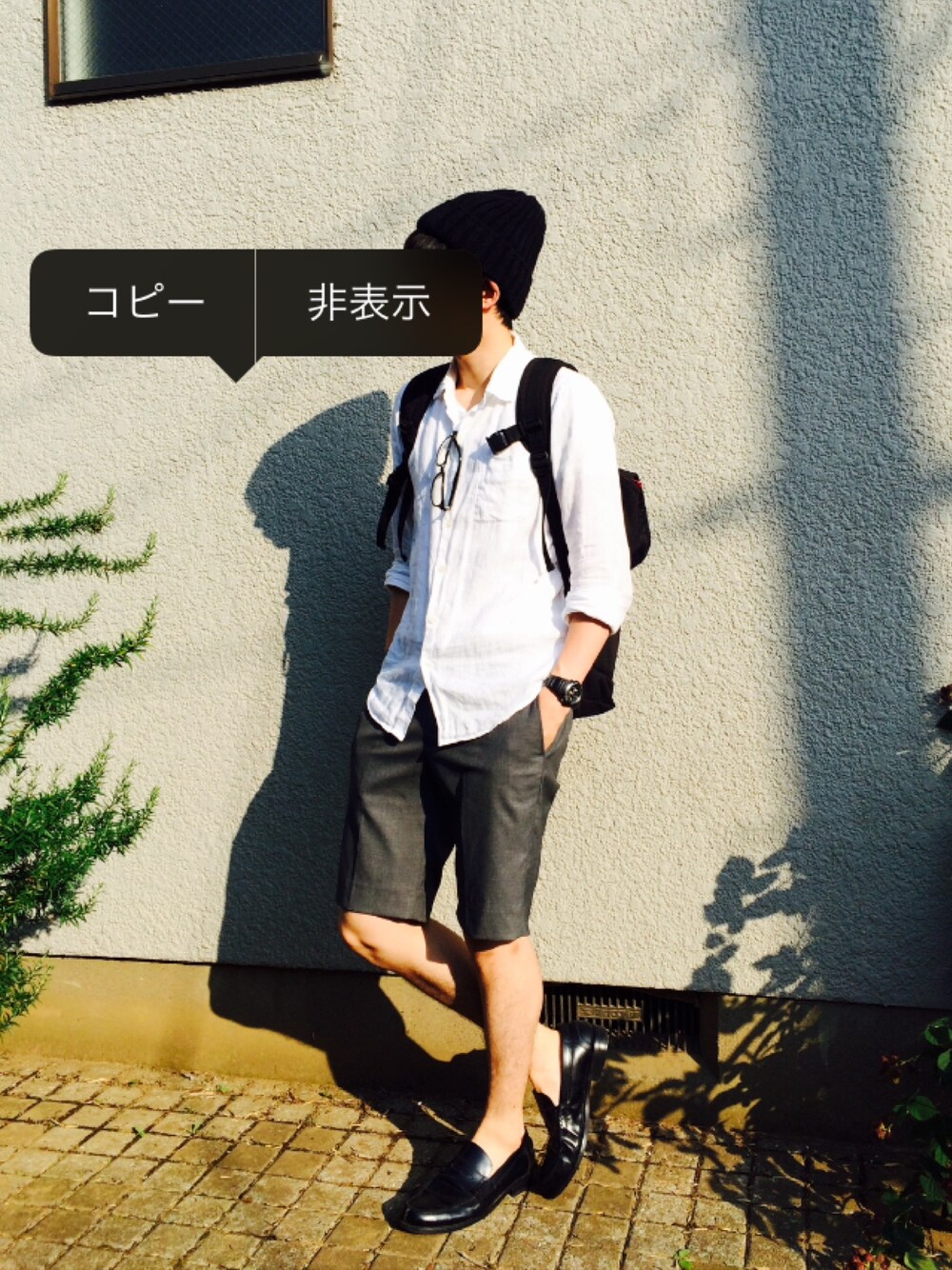ホワイト系のシャツ/ブラウスを着用したメンズの夏コーディネートの1枚目の写真