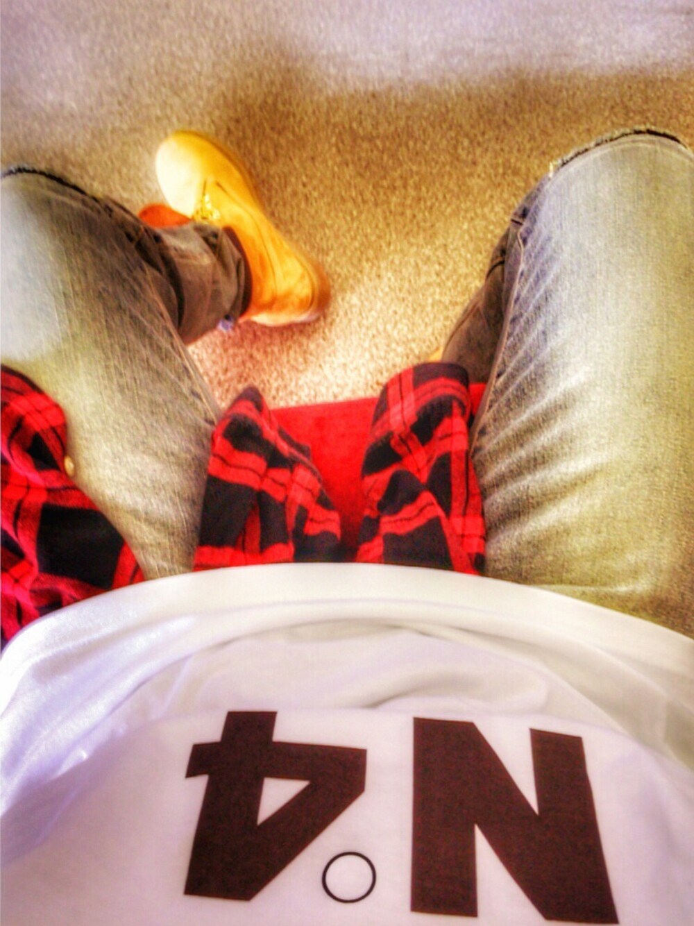 STUSSYの大きめのTシャツにチェックシャツの腰巻きでストリートスタイルを出してみました😊