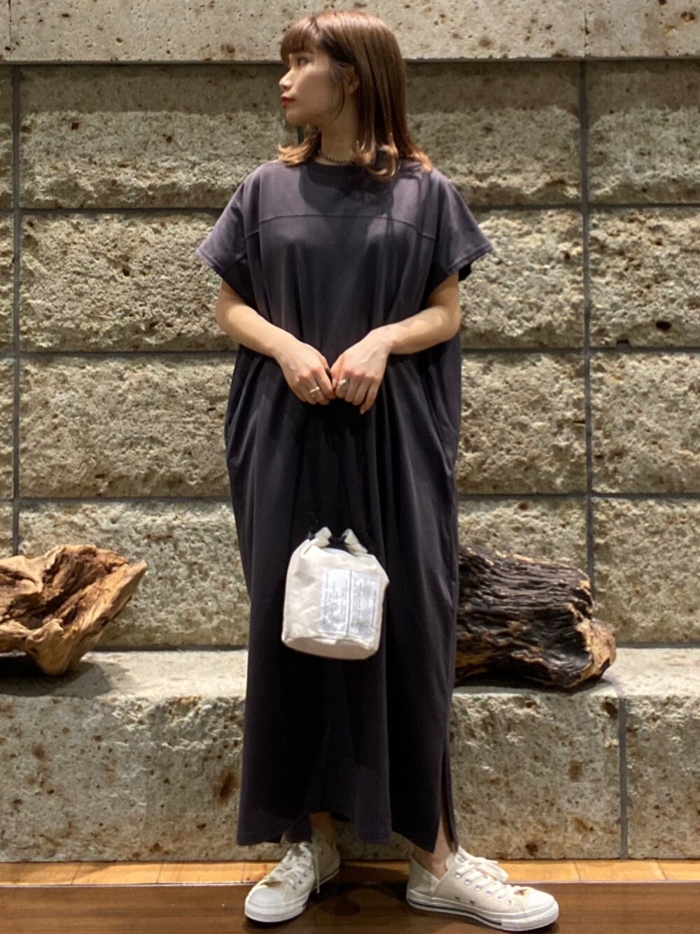 大人っぽくお召しいただける Tシャツワンピース。 程よくゆとりのある身幅と ストレートのシルエットのバランスが とてもきれいで、Tシャツワンピースながらも 大人な印象です◎