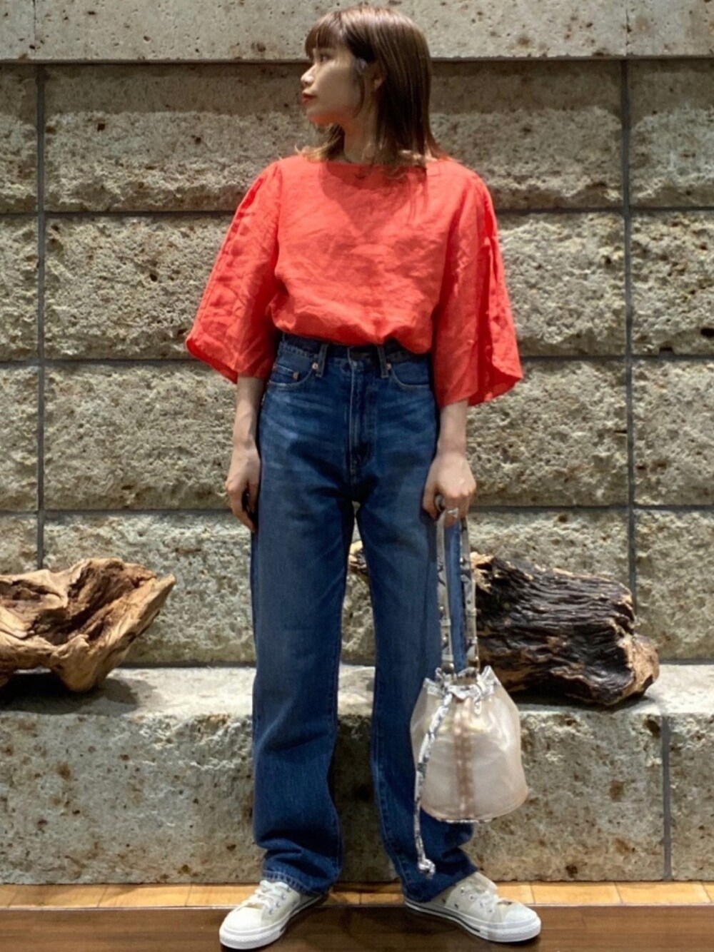 鮮やかなコーラル色が目を引く リネンブラウス。 春夏らしい鮮やかなカラートップスは 淡いデニムと合わせるだけで、 季節感がぐっと際立ち爽やかでおすすめです◎ 合わせたスニーカーも ヘンプ素材のオールスター。 ナチュラルさがとてもいいです!