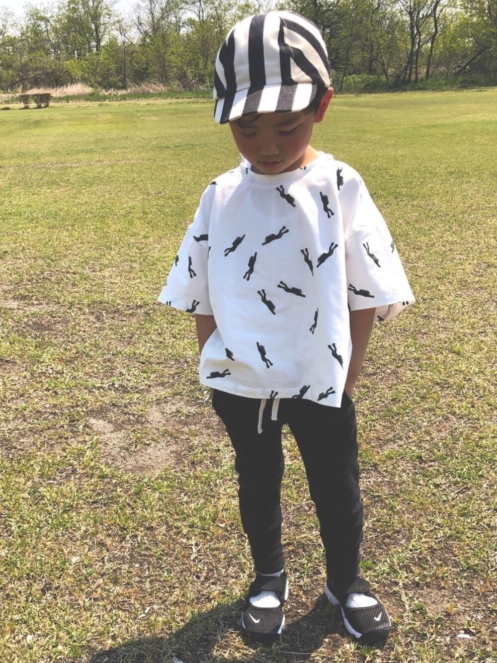 いつもありがとうございます◡̈ アルカカマのダイバーtで モノトーンコーデ🐼 人っ子一人居ない公園で自転車とサッカー⚽️ 田舎で良かった😂🙌