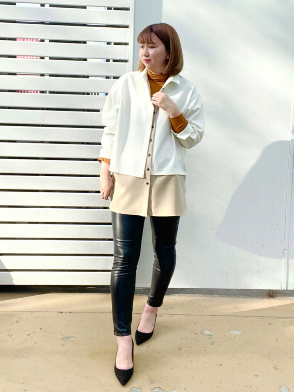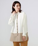 バイカラーがCAST:らしいシャツジャケット。本当にシルエットが綺麗!!素材はしっかりとした生地ですが、サラッとした着心地です!前開きボタンなので、羽織りとしても着用できます◎レザーパンツをいれてあげるだけで一気に秋モードに✨冬はインナーにタートルネックニットをいれて、長くお召しいただけます!