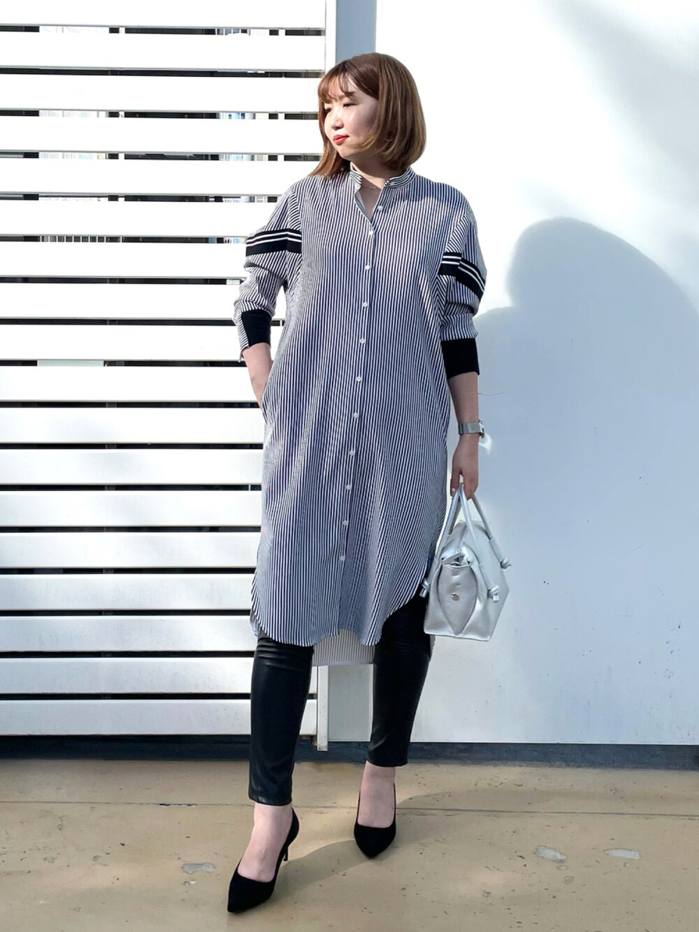 毎年大人気のストライプワンピースが新登場!ドルマンスリーブでオーバーサイズのシャツワンピース。シャツ素材ではなく、ポリエステル100%の素材でストライプのプリントをしており、シワになりにくく、ストレッチも効いており、サラッとした着心地です◎タイトシルエットのパンツレイヤードスタイルが今季のCAST:おすすめです✨