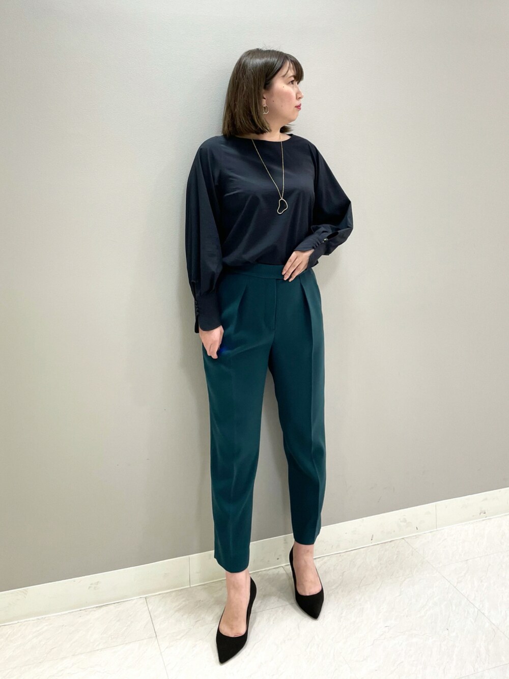 カラーパンツコーデ♪パンツは後ろがゴムになっており、着心地抜群です!CAST:のパンツはシルエットがとても綺麗で、こちらのパンツはSMLと3サイズ展開で一本持っておくと重宝します◎(私は2色買いしました)ブラウスは柔らかいながら少しパキッとした生地でキレイめブラウスです!袖を少しまくるとパフスリーブ袖に✨袖口はくるみ釦になっており、細部までこだわったブラウスです✨