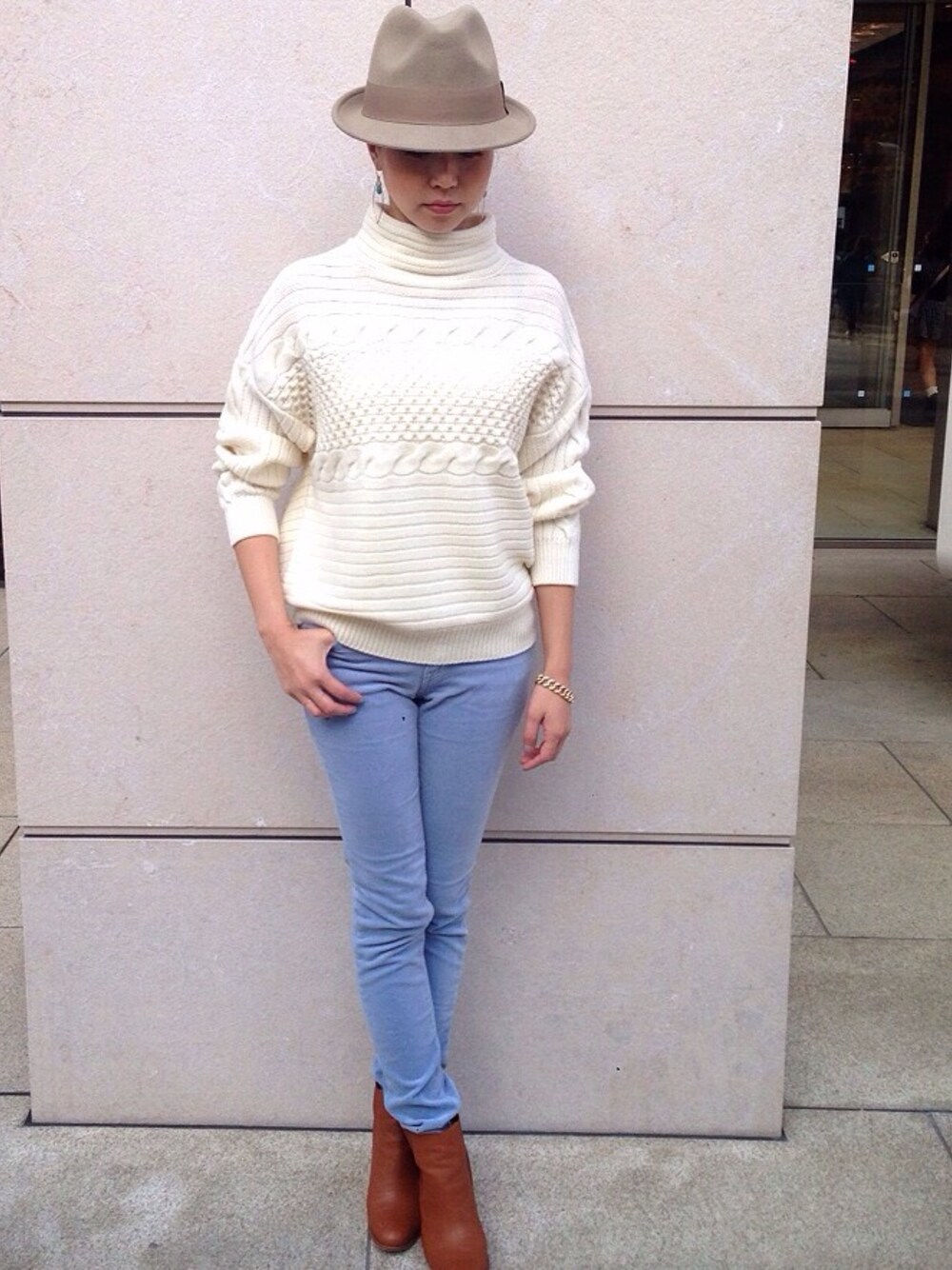 今年流行のハイネックニット!! ボリューム感がとても可愛くパンツやタイトSKとの相性◎ カラーパンツはyanukuのもので\18,000+tax、HATはchristy'sのもので\7,000+tax です! すべてplanet blue world店舗にてお取り扱いしております♪(シューズはスタッフ私物)