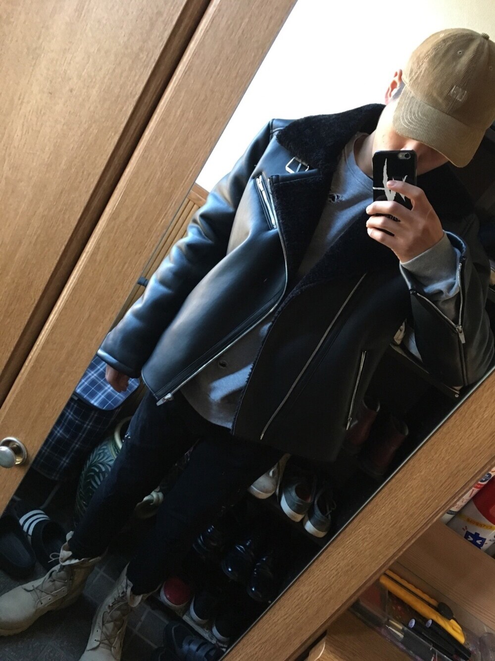 ourer...zara tops...H&M bottoms...zara boots...rothco cap...elvira ootd zaraのムートンライダースに今度はハマる笑 久々のrothcoのブーツ
