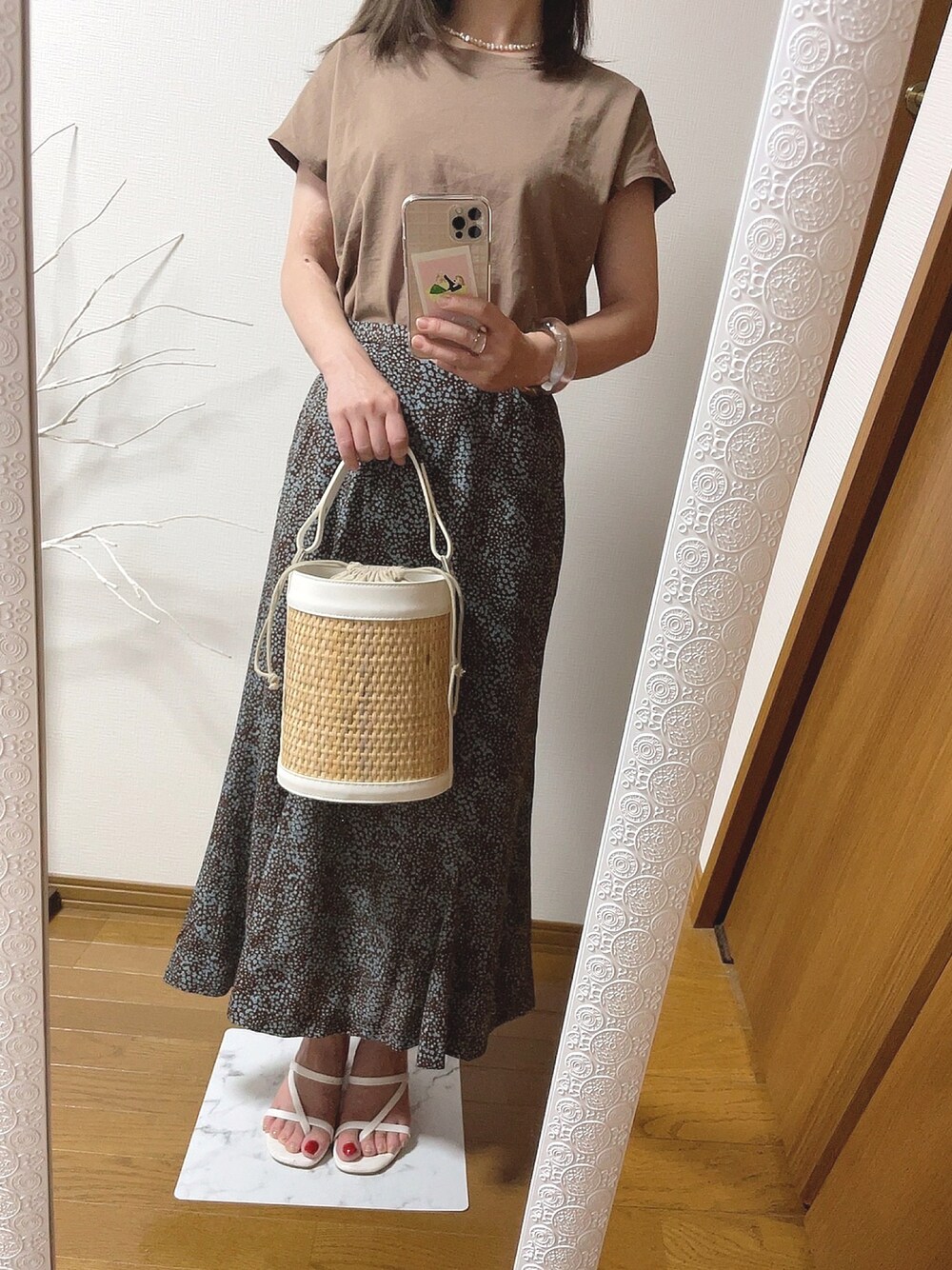 k♡のかごバッグ「フェイクレザーコンビサークルBAG」を使ったコーディネート