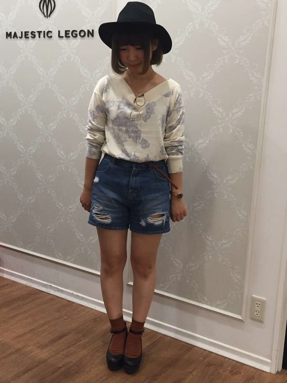 肌寒くなってきましたねー!! ニットの季節ですねーー!!( ^ω^ ) ニット×デニムでカジュアルコーデです(^-^) 落ち着いた色味の花柄は秋冬にも大活躍ですよ〜 ソックスとベルトでトレンドカラーのキャメルを取り入れてみました〜(^-^)