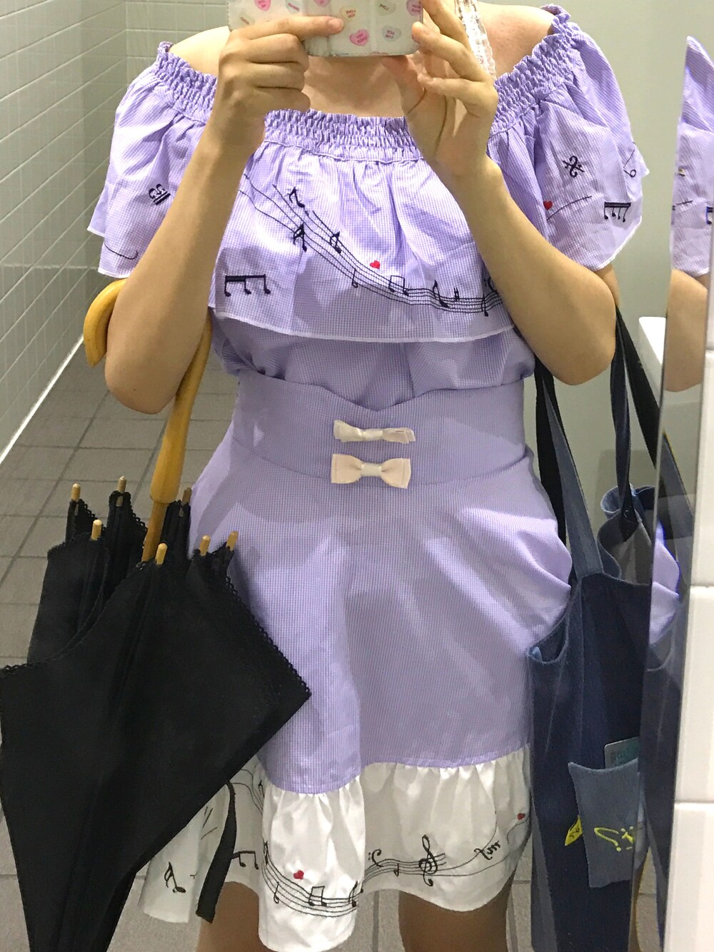 服とかばんが全く合ってない、、(笑) バイトのかばん(´-`).。oO 最近、暑くてほんとにむり、、