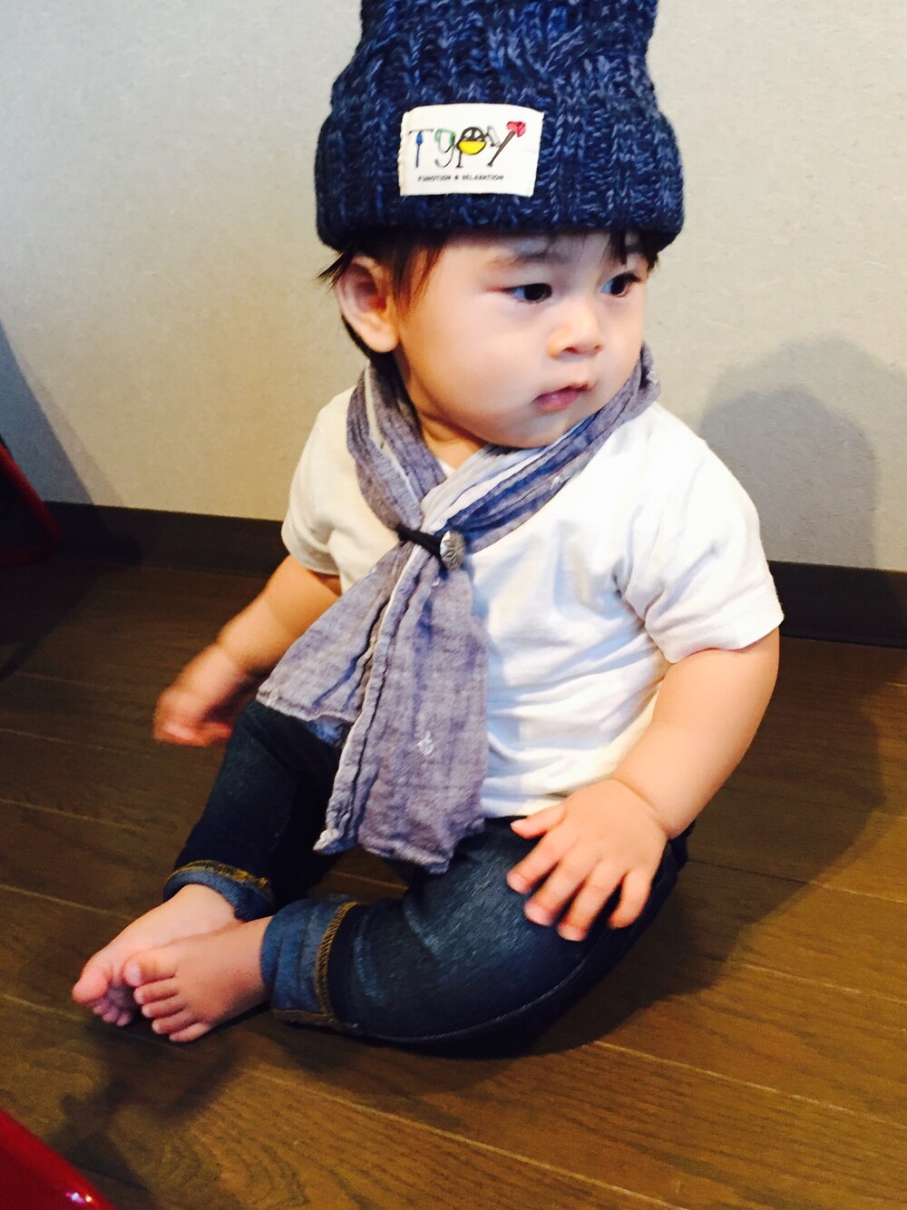 CIAOPANIC TYPYのキャップは親子で購入。 素材も柔らかくて、オススメです!TKのスカーフもポイントです!branshesのデニムはストレッチが効いて履き心地良さそうです!