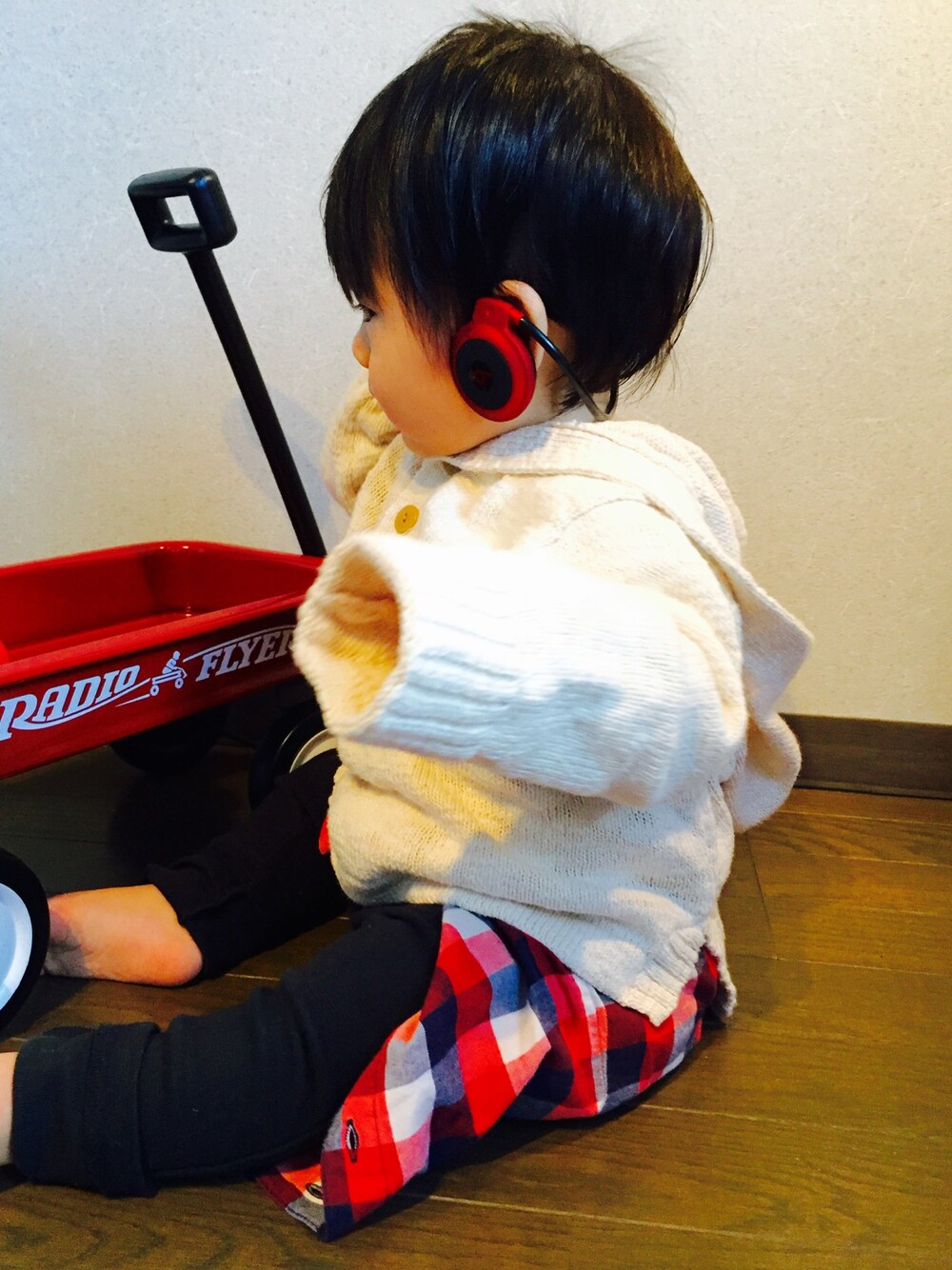 フード付きセーターを着て秋コーデ! HusHusHのストレッチの効いたパンツ。着回しが効き動きやすそうです!お気に入りの曲を聴きながら楽しく遊んでます!