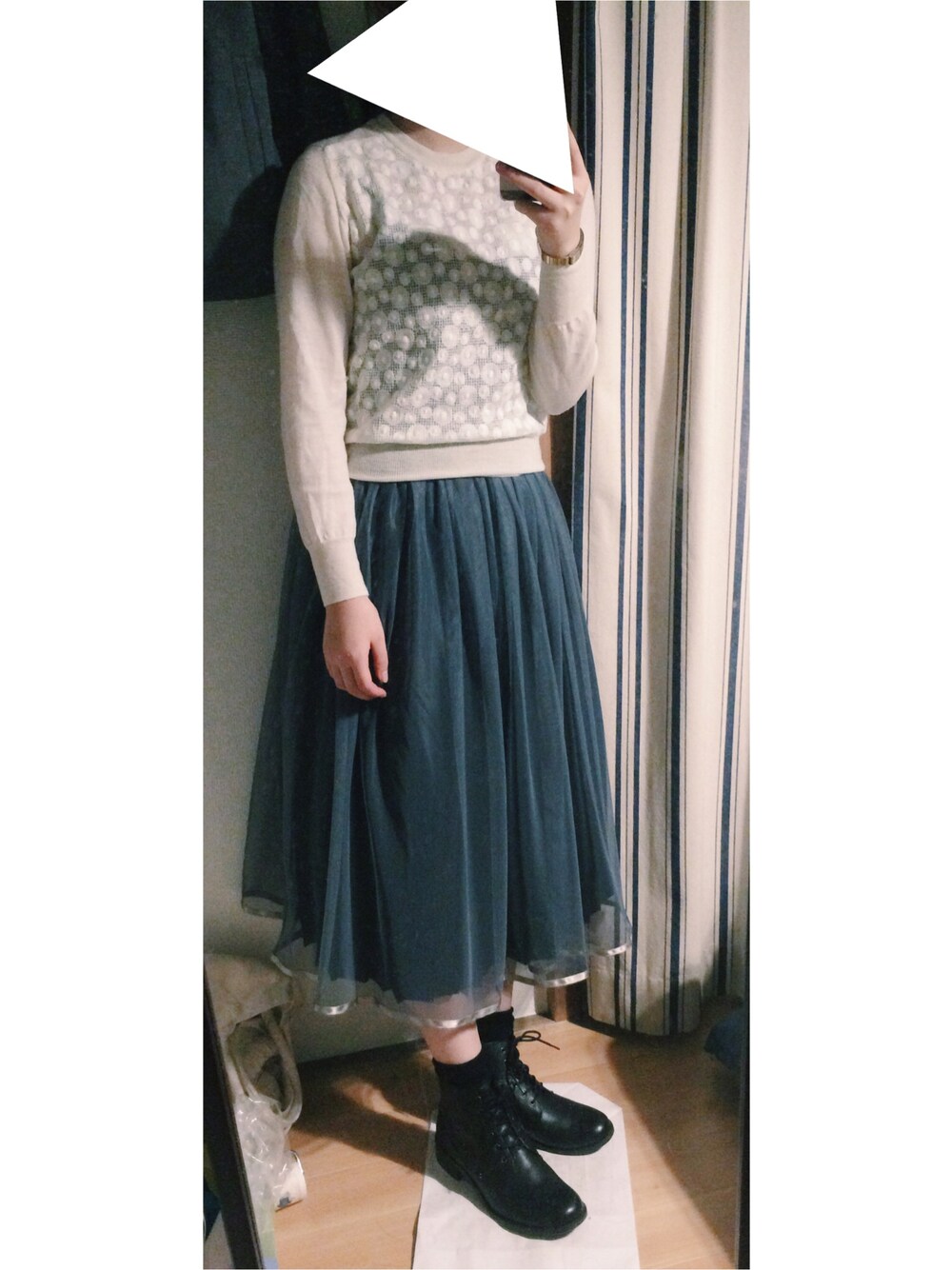 2015/10/11 長袖 l'atelier du savon スカート bulle de savon スカート I am I 靴 studio clip 上着はいつものAdam et Rope'のMA-1 プリーツスカートの上にチュールスカートを重ね履き レースにチュールに可愛いアイテムばかりを身に付けて違和感満載でした〜 まあ、たまには良い(本当は大好き)