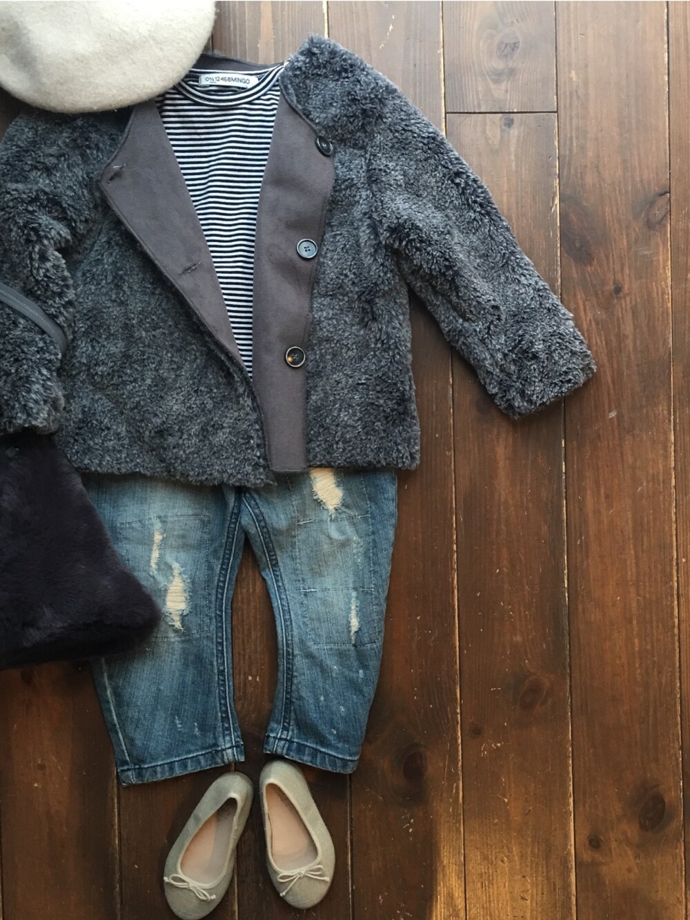 CACHE-CACHEのムートンコート「Violeta&Federico JACKET REVE(GREY)」を使ったコーディネート