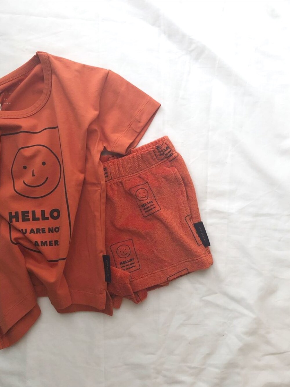 tinycottons 19ss . ☺︎ ☺︎ ☺︎ . . tiny cottons ''HELLO''SS TEE ¥4900+tax 2y.4y.6y.8y.10y . ''HELLO''short ¥5800+tax 12m.2y.4y.8y . . . .