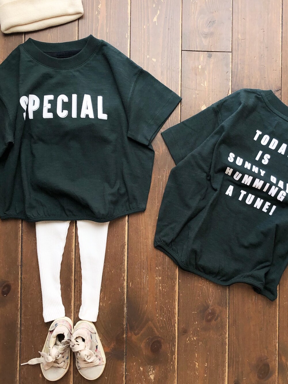 大きめTにレギンスの人気スタイル💓 . arch&lineのTシャツはシルエットも文句なしの可愛いさ💓 バックプリント有りもポイント高いです❣️ 今の時期ならロンTを重ねても🙆♀️ ママ、パパサイズもあるので是非お揃いを楽しんでくださいね😊💓 . . AL911310 arch&line SLUB COLLEGE TEE . xs(85〜95) s(100〜110) m(115〜125) l(125〜135) xl(135〜145) . size2.3¥5800+tax (2はママ3はパパも着れます) . . G682 レギンス¥1404 80〜130 . .