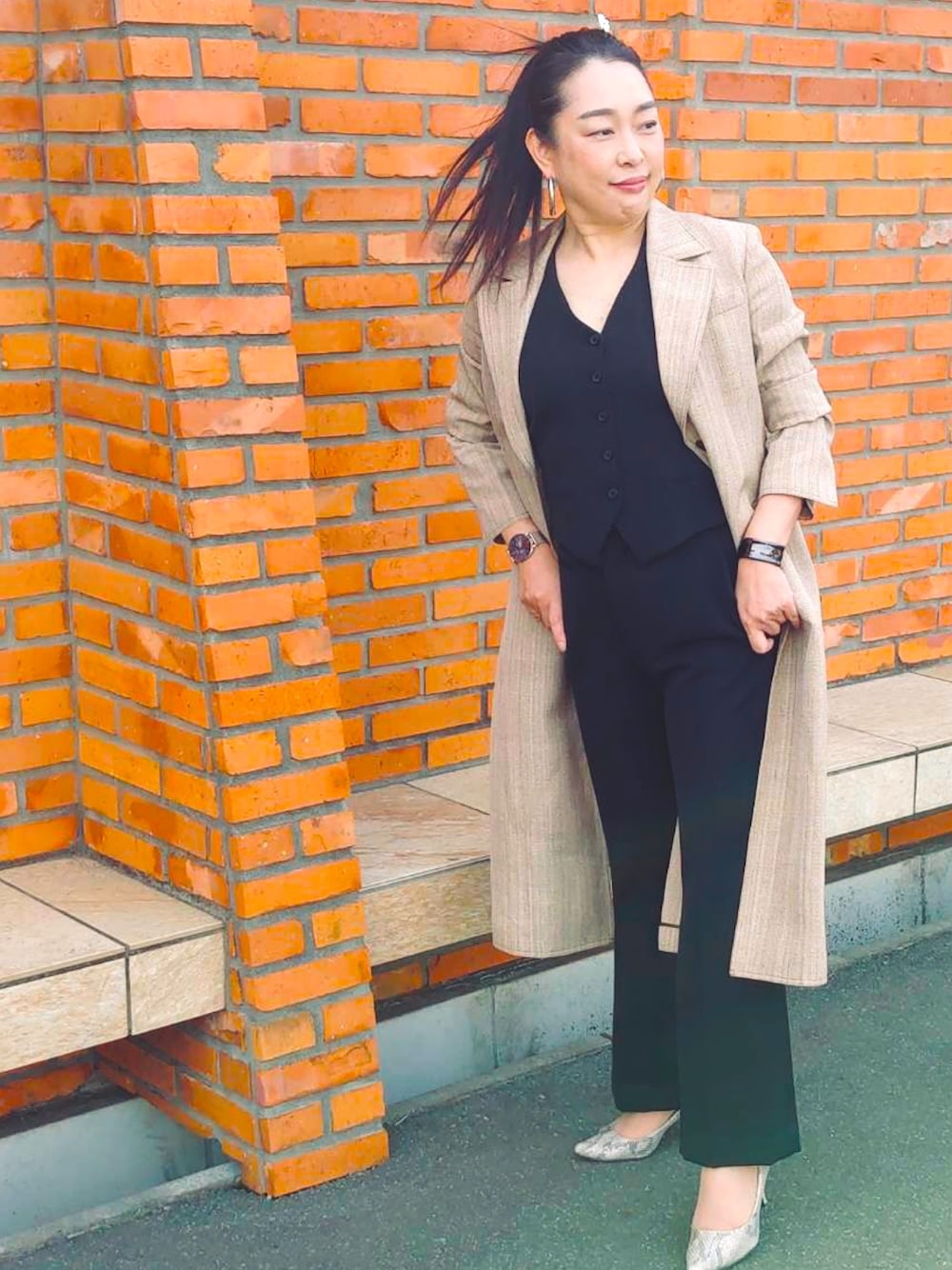 ロングのジャケット コートとしても着られるから便利 ベストにパンツでマニッシュに着るのが好き