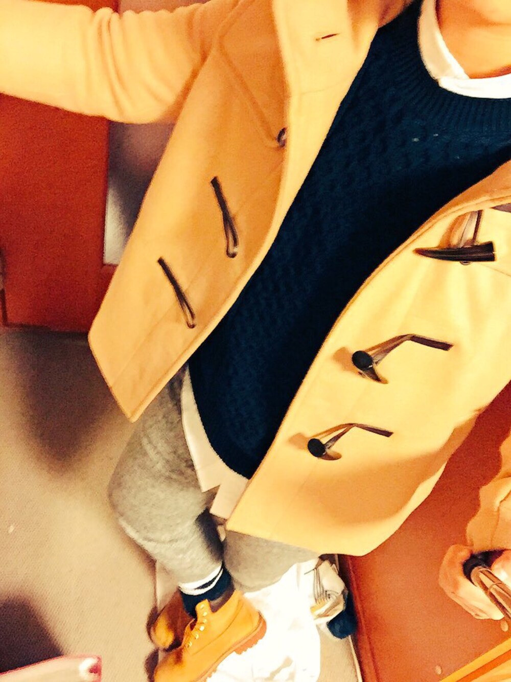 初めてキャメル色のダッフルコート買ったので 取り敢えず家にあるもので コーディネートしてみました(●´ω`●)