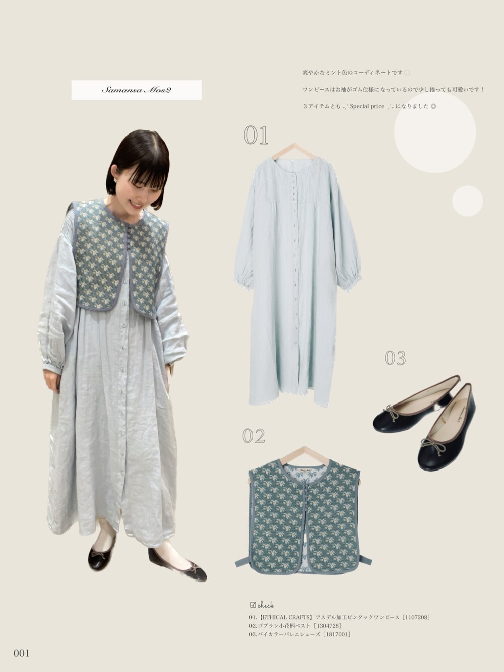 爽やかなミント色のコーディネートです ◌ ワンピースはお袖がゴム仕様になっているので少し捲っても可愛いです ! 3アイテムとも ˗ˏˋ Special price ˎˊ˗ になりました ◎