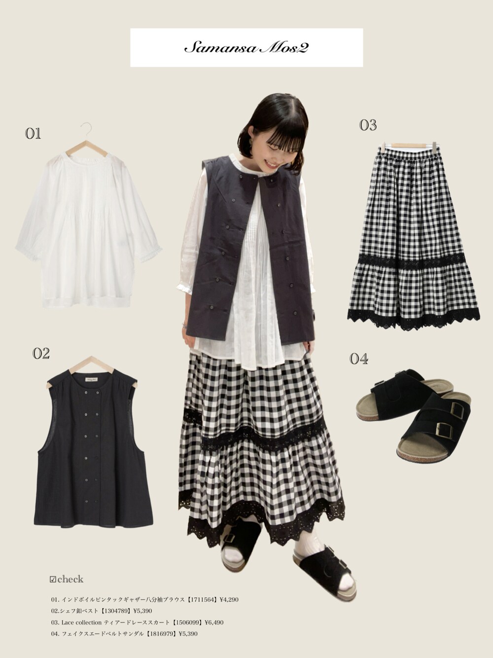 シェフ釦ベストと【Lace collection】のスカートを合わせました 👩🏻🍳 ブラウスも胸元のピンタックや袖口の華奢なフリルがポイントになって可愛らしいデザインです ◌