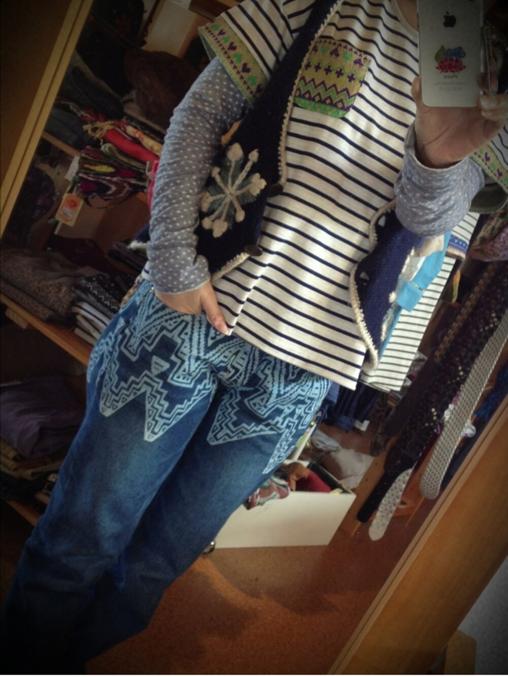 着納めニットベスト 春の装いに雪の結晶モチーフのニットベストをオン。