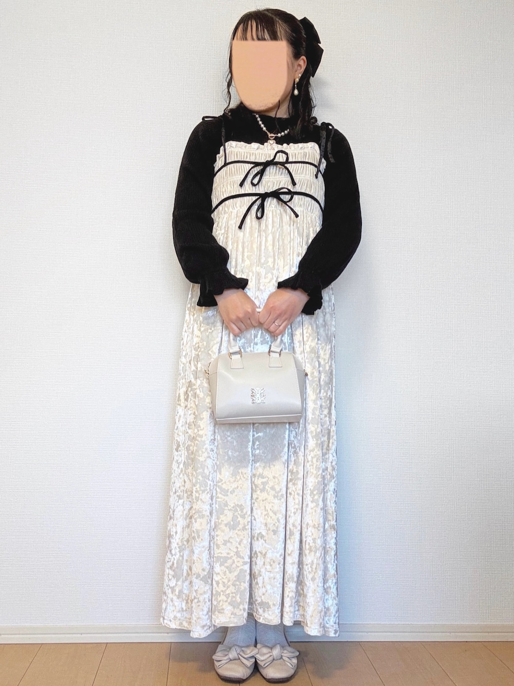 見ていただきありがとうございます⸜❤︎⸝ クラッシュベロア特有の光沢感が、 エレガントな印象を与えてくれるキャミワンピ 高級感溢れるコーデとなっているので、 お呼ばれシーンでも大活躍間違いなし