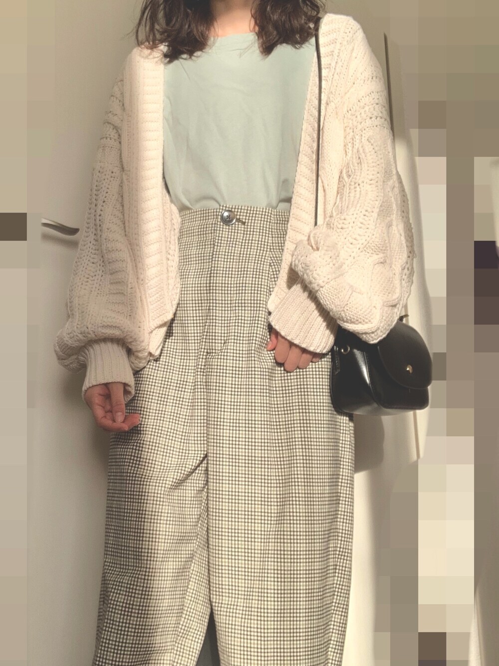 . 春コーデ🌸 だんだん桜が咲いてきましたね🐾 中を色味コーデしてふわっと白をかぶせるスタイルが好きです(*´꒳`*) 靴とバックは黒でまとめてます🌼