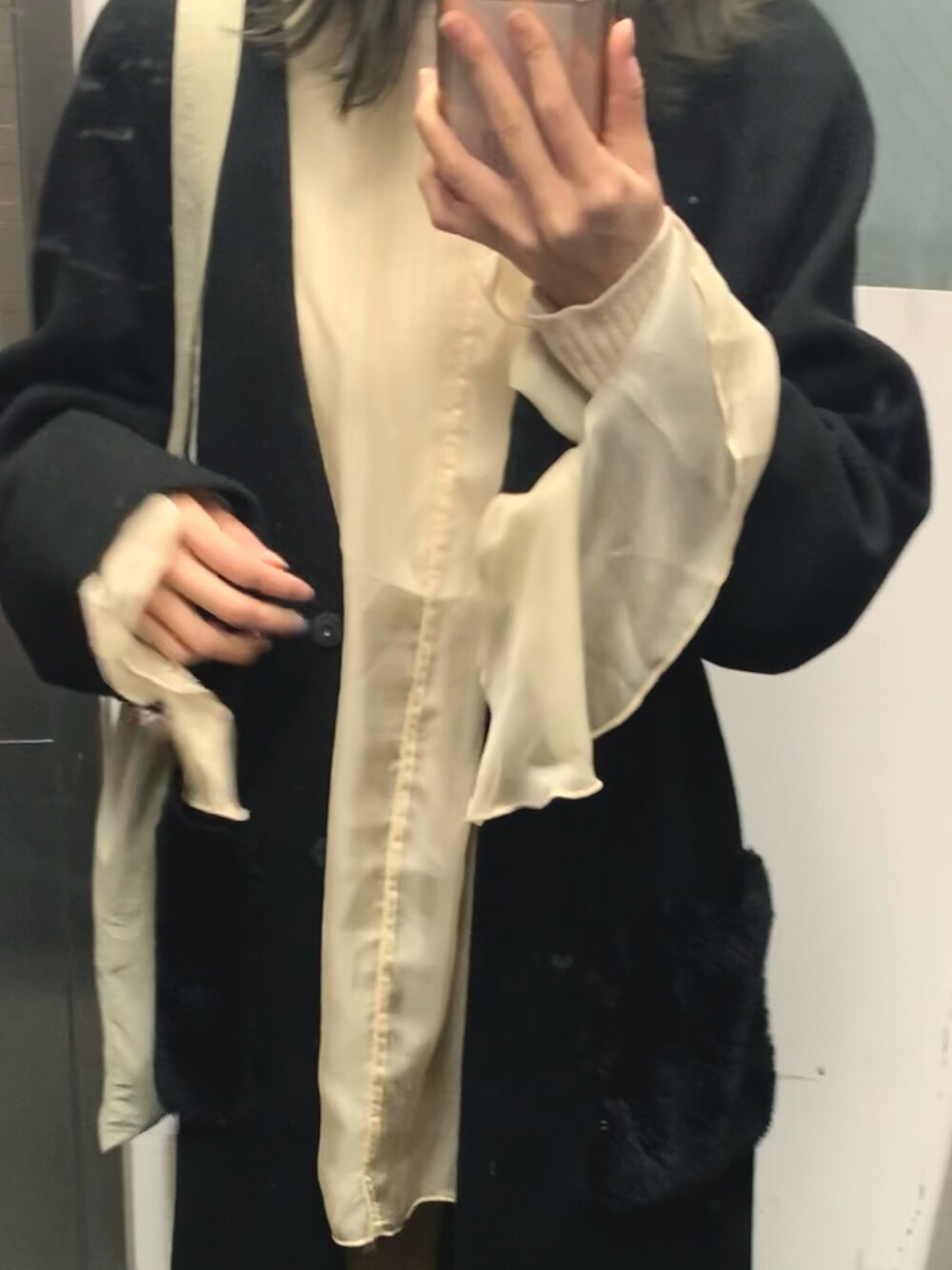 ブレブレ📸 alumuのシアートップスがかわいい‼︎ テロテロ感がたまらん♡ 黒と合わせるとカッコいい‼︎