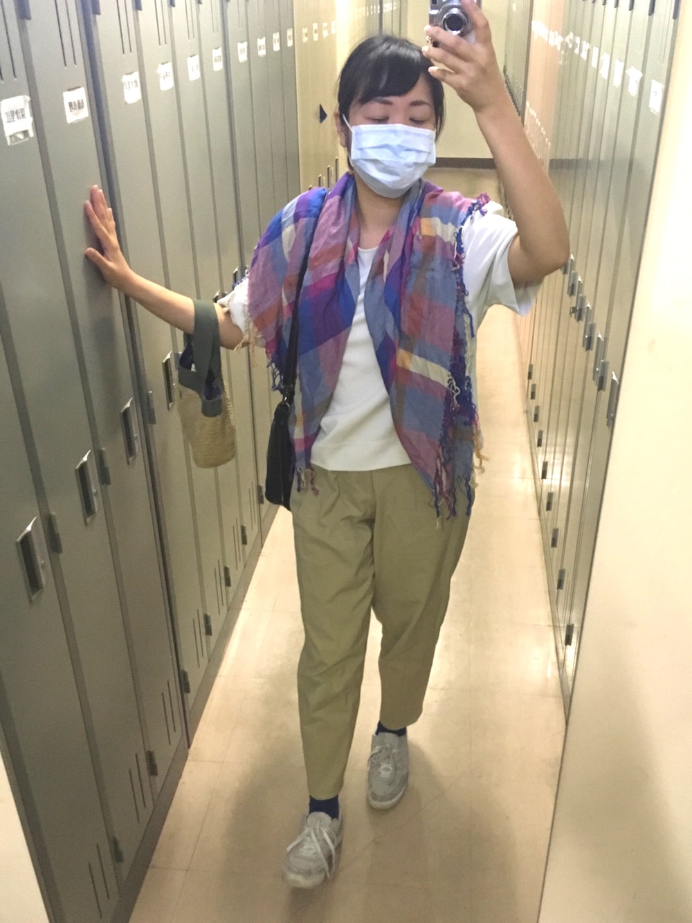 ストールでなんとなく華やかさを。なんの気ない通勤服です。