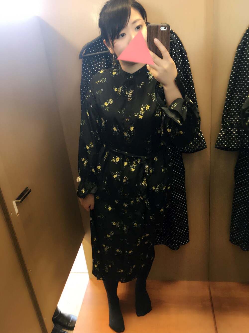 しまむらパトロール。 黄色い小花柄がポイントの大人っぽい黒ワンピースをゲット! なんと2900円。 流行りのドット大迷いしたけど着た結果、顔に似合うのはこちらでした。