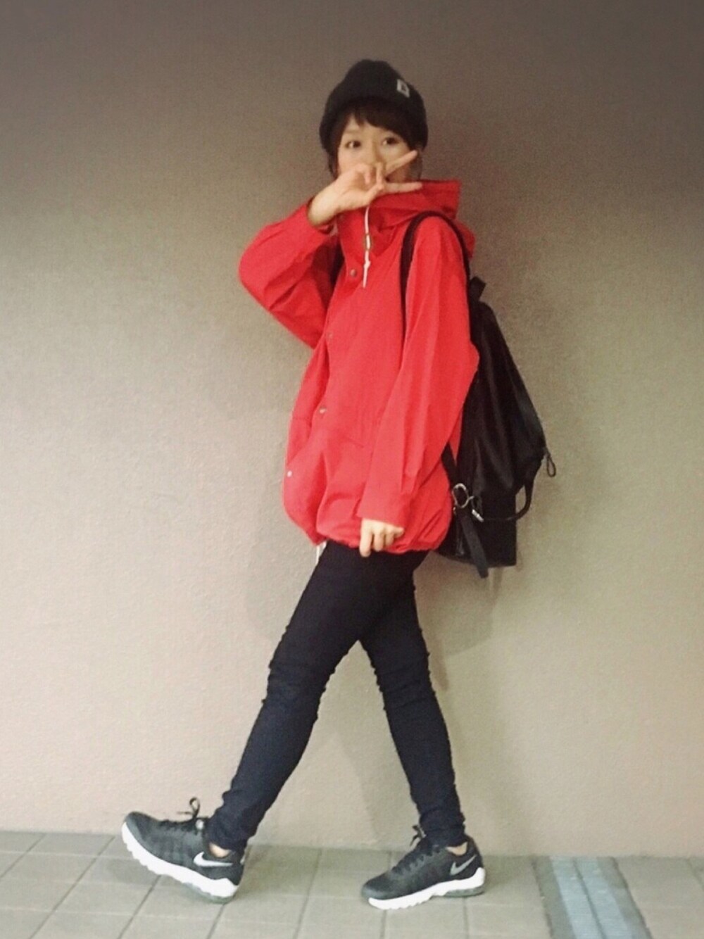 ラブアンドピースに参加します( ¨̮ ) 間に合った〜 赤のマウンテンパーカーはセールの勢いで購入したのでちょっと賭けだったんですが、生地の厚さもオーバーサイズのシルエットも可愛い!よかたーー